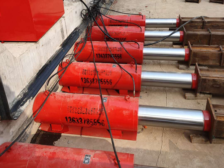 操作方法:使用电动泵站通过油管跟一台一拖二分配阀相连,再使用两根油管将一拖二分配阀连接2台一拖五分配阀,将单作用千斤顶跟一拖五分配阀相连。如此即可驱动单作用千斤顶同时工作。