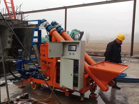 压浆机为连续式工作方式,压力无波动,泵送浆体无气泡,理论工作量4.5立方米/小时,并具备自动保压功能。压力表总量程为5Mpa,保证高压时压力表可靠工作。压浆时的实际压力一般控制在0.5Mpa~0.7Mpa之间。较小分度置为0.1Mpa,计量更精。