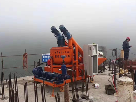 本台车设计为移动式,主要由自动上料系统、自动称重系统、自动压浆系统、微电脑自动控制系统、高低速搅拌系统、供水系统和行走系统等部分组成。该设备高速搅拌部分一次可搅拌200公斤浆料,每小时搅拌2000至3000公斤浆料。另外设有低速搅拌储料桶,可容纳高速搅拌桶已经搅拌完成的浆料。高速低速搅拌桶配合,可实现向压浆设备不间断供料。