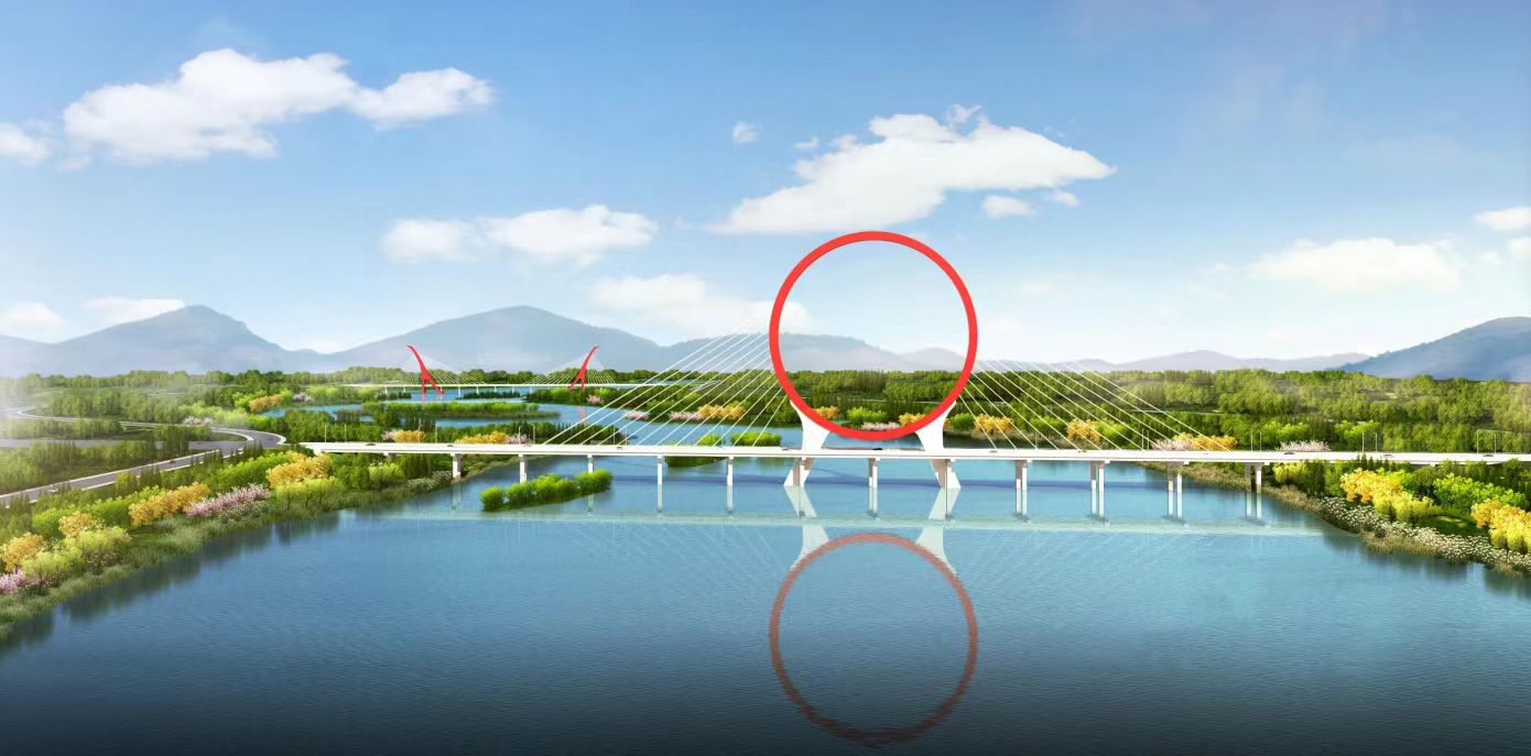 设计灵感源自信阳城阳城遗址出土的战国 “虎座凤架鼓”。两座鲜红色的人字形桥塔,如两只凤凰,与相邻的工十路桥(鼓形)组合,构成完整的 “丹凤朝阳” 意象。